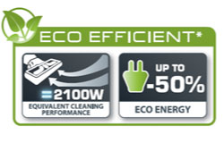 Те саме стосується пилососів із мішками: їхнє енергоспоживання зменшилося без жодного впливу на потужність роботи. Чудовим прикладом є модель Eco Silence Force Extreme. Вона має двигун потужністю лише 750 Вт, але ефективна так само, як прилад потужністю 2200 Вт. Усі складові приладу було спроектовано так, щоб отримати найкращий результат. Зокрема, це стосується головної щітки пилососа.