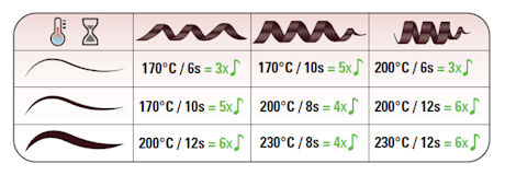 • Оберіть потрібну комбінацію (температура й час), враховуючи густоту вашого волосся й бажаний результат.