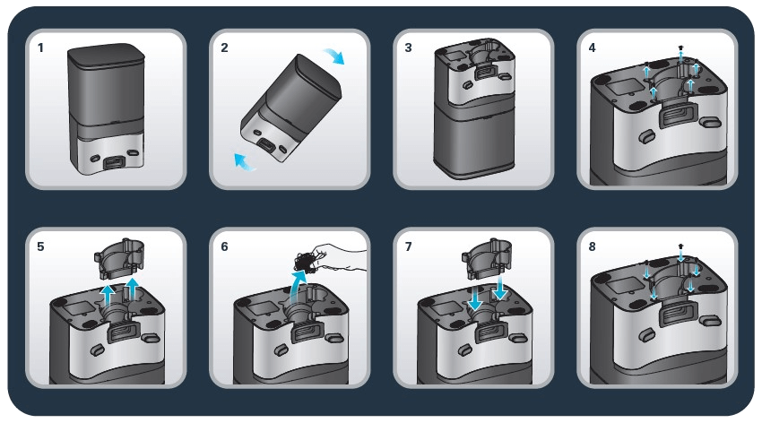 • Після очищення пилового каналу поверніть на місце кришку та закрутіть 5 гвинтів.